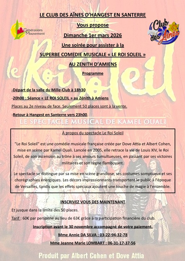 tarif : 60€ par personne au lieu de 63€ grâce à la participation financière du club.